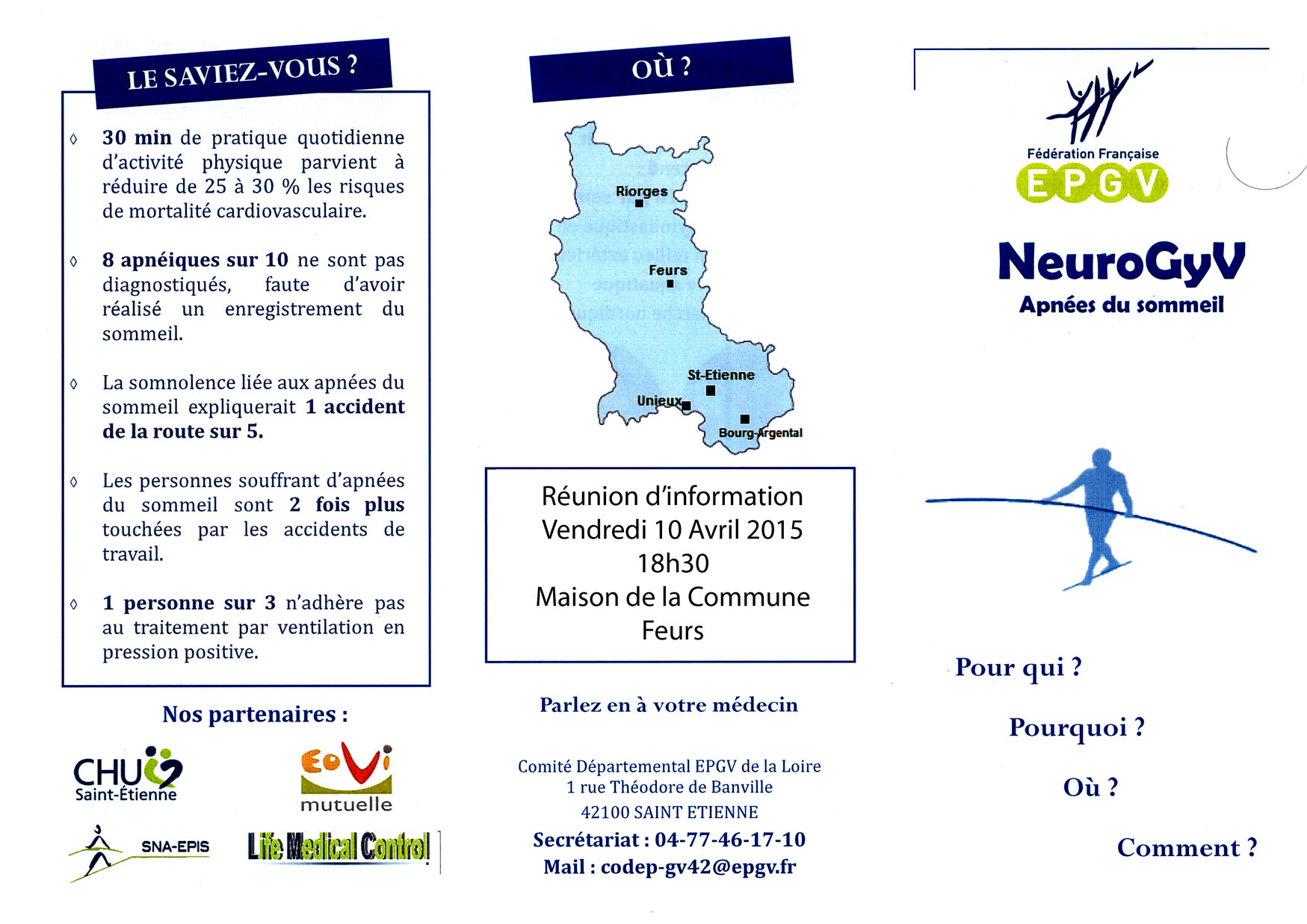 La GV Le Forez est partenaire de la NeuroGyV, programme passerelle d'activités physiques adaptées destinées aux personnes présentant une pathologie respiratoire du sommeil, en partenariat avec le l'équipe SNA-EPIS de l'Université Jean Monnet de Saint Etienne, CHU de Saint Etienne, Life Medical Control, la mutuelle EOVI,