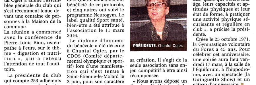 La Gymnastique volontaire LE FOREZ commence la nouvelle saison avec beaucoup d'optimisme.... Article du journal LE PAYS du 3.10.2019